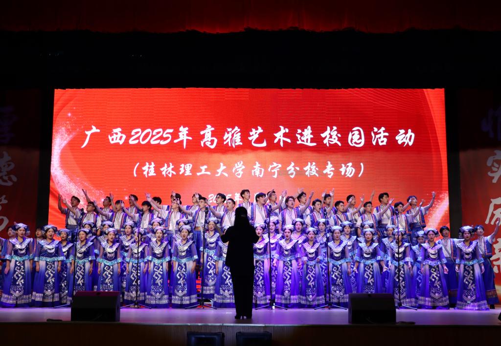 为深化美育浸润行动,5月29日晚,由自治区教育厅指导,广西艺术学院合唱团担纲的高雅艺术进校园活动走进南宁分校。广西艺术学院党委副书记、广西学校美育研究发展中心主任毛茂林,南宁分校在家领导、嘉宾,以及3000余名师生代表共同欣赏这场融合艺术熏陶与思政教育的文化盛宴。