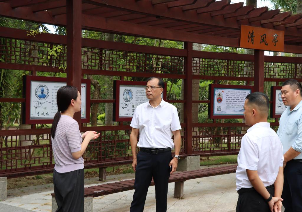 调研期间,张勤俭一行实地考察了南宁分校廉政文化教育基地,认真听取了南宁分校关于清廉学校建设工作情况汇报,详细了解了南宁分校在实施优良党风巩固行动、清明校风促进行动和清正教风提升行动等方面的具体举措。