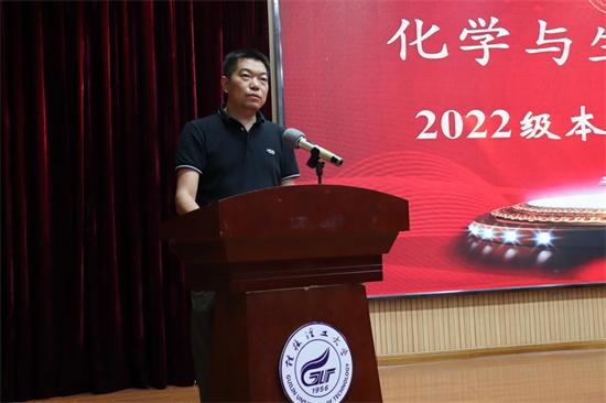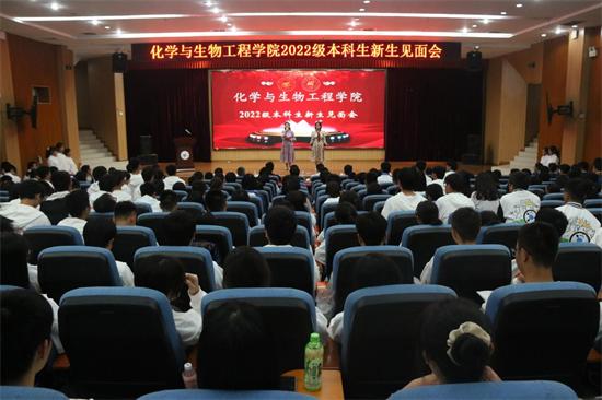 10月23日晚,beat365官方网站化学与生物工程学院在雁山校区图书馆报告厅召开2022级新生见面会。学院党委书记彭代江、院长匡小军、学院其他党政领导,新生班主任、新生辅导员及全体新生参加了本次见面会。