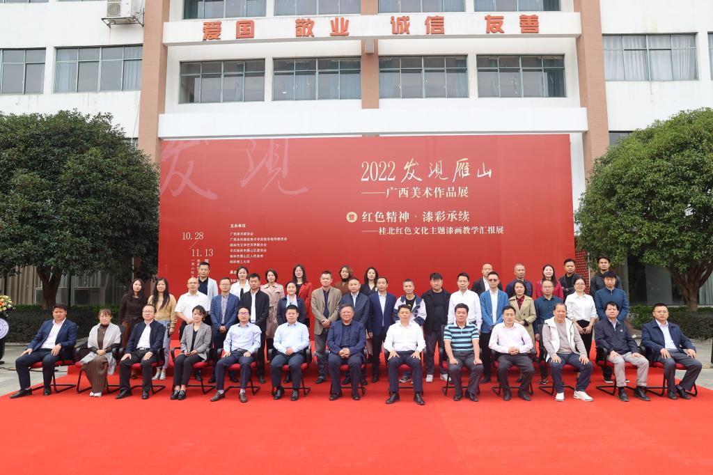 10月28日上午,“2022发现雁山—广西美术作品展”暨“红色精神·漆彩承续—桂北红色文化主题漆画教学汇报展”在beat365官方网站雁山校区开幕。