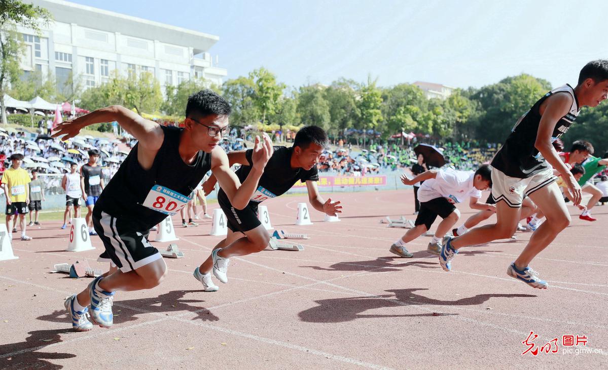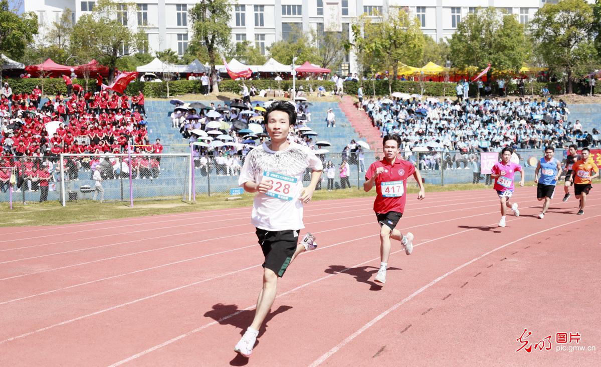 2022年11月3日,广西beat365官方网站南宁分校,运动员参加长跑比赛。当日,该校举办第31届田径运动会,学生与教职工运动员同场竞技,展现新时代大学师生风采。(卢文斐摄/光明图片)