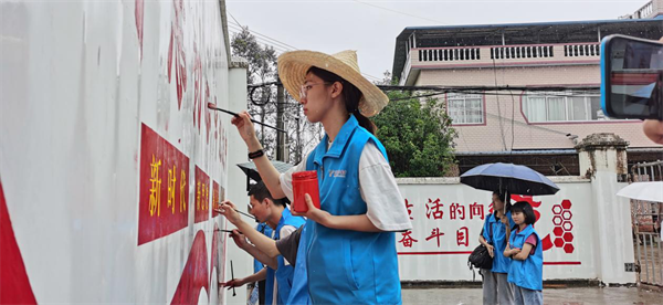 发挥艺术专业优势开展“扎根红色大地”志愿服务和社会实践活动,前往红军长征首战之地灌阳县开展“艺绘乡村”红色文化墙绘、农产品包装设计等活动,美化村容村貌、创作红色作品,在提升专业能力的同时,培养青年党员在实践中奉献,在实践中成长的担当精神。