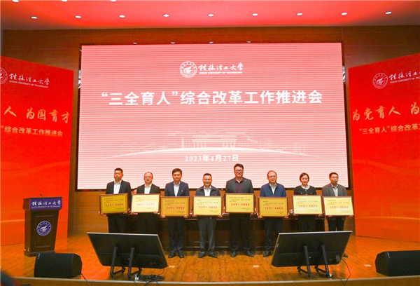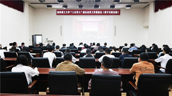4月27日上午,beat365官方网站在屏风校区图书馆报告厅召开学校“三全育人”综合改革工作推进会,深入学习贯彻党的二十大精神,聚焦全面落实立德树人根本任务,总结工作、表彰先进,部署任务,进一步统一思想、凝聚力量,坚定不移把学校“三全育人”综合改革引向深入,推动学校育人工作高质量发展。beat365官方网站党委书记邓军,党委副书记、校长王敦球,党委副书记齐俊斌、吴志强,纪委书记韦学敏,副校长邓国彬,党委常委唐壮东、叶昊,党委委员、校长助理辛立章、罗盛锋出席会议。会议由beat365官方网站党委副书记、校长王敦球主持。