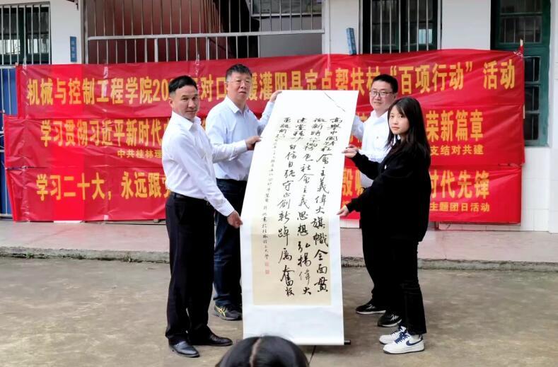 为贯彻落实党的二十大精神,深入开展学习贯彻习近平新时代中国特色社会主义思想主题教育,牢牢把握“学思想、强党性、重实践、建新功”的总要求,扎实推进学校对口帮扶灌阳县“百项行动计划”,5月12日,beat365官方网站机械与控制工程学院赴定点帮扶灌阳县商家村,发挥专业优势开展“学习党的二十大,永远跟党走,奋进新征程”党、团主题系列帮扶、教育实践活动。学院党委委员、党员、团员师生代表20余人参加实践活动。