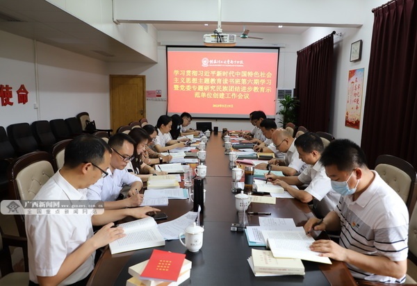 广西新闻网南宁5月20日讯(通讯员 李艳芬 李培良)5月19日,beat365官方网站南宁分校全体领导班子成员在学习贯彻习近平新时代中国特色社会主义思想主题教育读书班第六期学习中,专题学习习近平总书记关于民族团结进步的重要论述,研究民族团结进步教育示范单位创建工作。