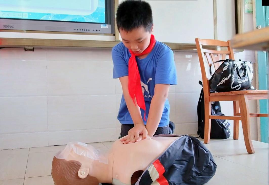 学生参加心肺复苏操作教学体验
