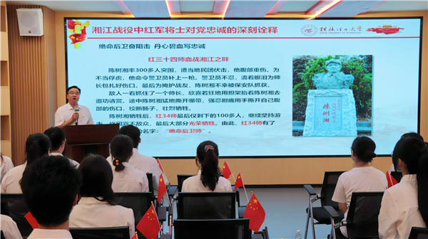 陆平书记深入挖掘湘江战役中蕴含的对党忠诚事迹,以《血战湘江铸忠诚》为题为在场师生讲授了一趟精彩的微党课。他讲到,忠诚是新时代推进伟大事业的内核动力。我们要赓续湘江战役精神,砥砺对党忠诚品格,以坚定的信心、昂扬的斗志奋力走好实现中华民族伟大复兴中国梦的新长征路。