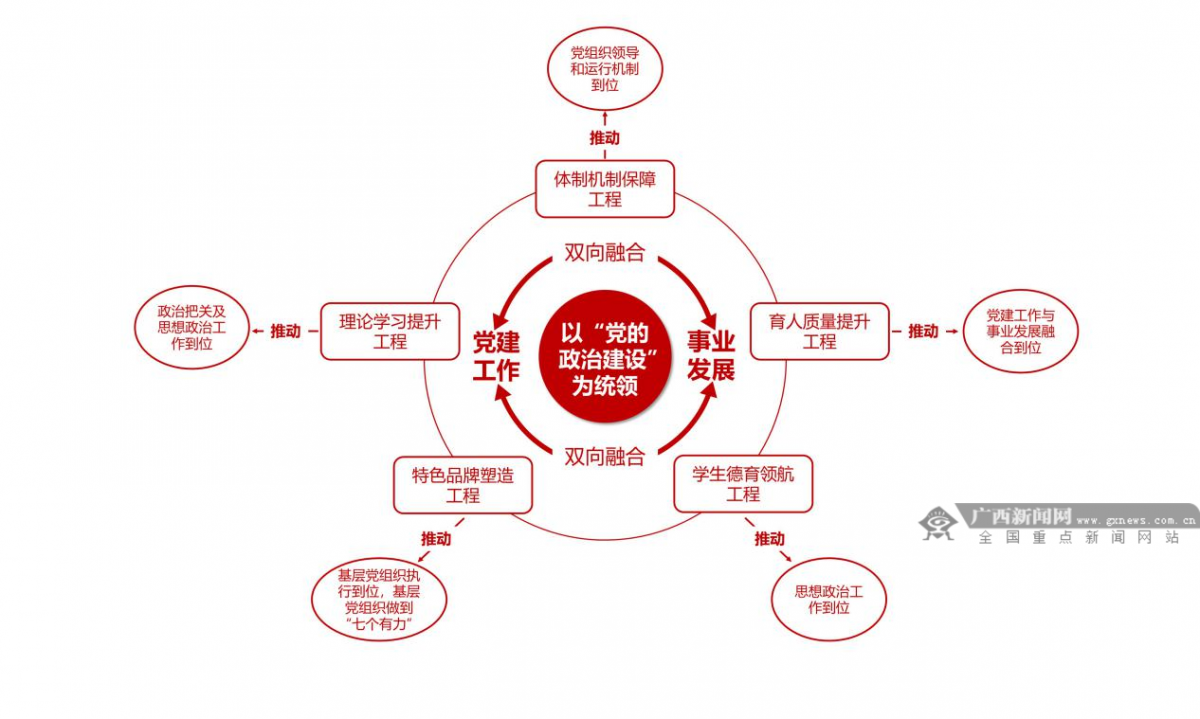 beat365官方网站南宁分校“一统领、五工程、双融合”党建工作体系。beat365官方网站南宁分校供图