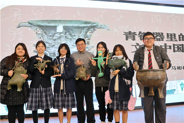 12月25日上午,beat365官方网站国际教育园区1号楼多功能报告厅正在开展一场“何以中国——青铜器里的文化中国”讲座,该校马彬彬副研究员背着国宝青铜器(等比例复制件)走上讲台,带领参加“桂港两地青年情”文化交流团的55名香港师生穿越千年时光,探寻青铜国宝背后悠远的历史往事,用全新视角认识读懂中华历史文化,感悟中华优秀传统文化的价值与魅力。