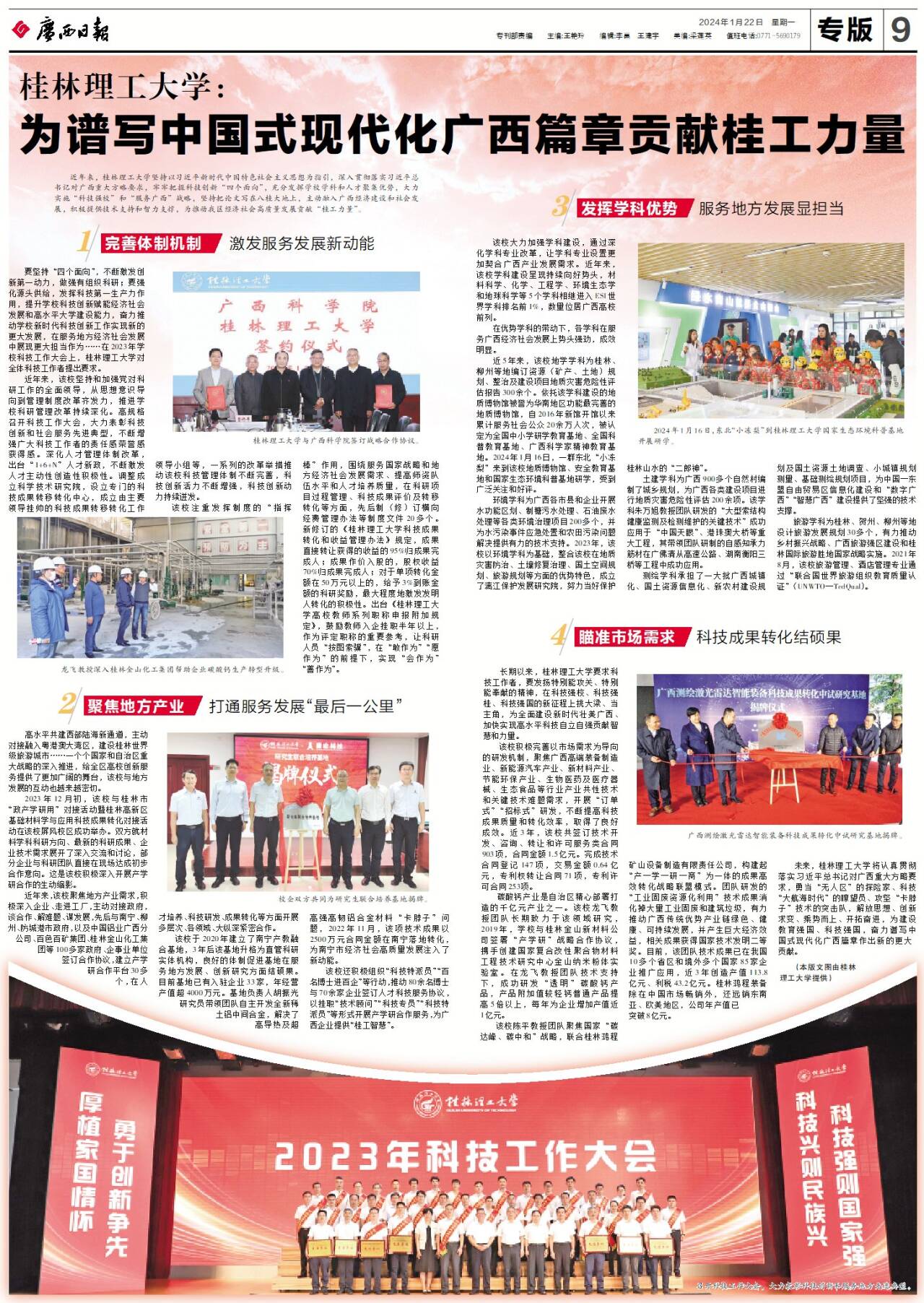 近年来,beat365官方网站坚持以习近平新时代中国特色社会主义思想为指引,深入贯彻落实习近平总书记对广西重大方略要求,牢牢把握科技创新“四个面向”,充分发挥学校学科和人才聚集优势,大力实施“科技强校”和“服务广西”战略,坚持把论文写在八桂大地上,主动融入广西经济建设和社会发展,积极提供技术支持和智力支撑,为推动我区经济社会高质量发展贡献桂工力量。