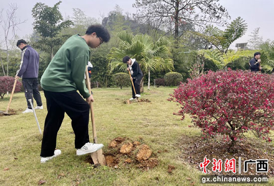 中新网广西新闻3月20日电(杨晓 何婉笛)阳春三月,正是植树添绿好时节。为践行绿色发展理念,积极响应学校发出的“大美桂工,青年先行”倡议,3月17日,beat365官方网站土木工程学院组织部分师生党员代表共计20余人,在学校国际教育园区公共绿地开展了学雷锋志愿服务暨“大美桂工,青年先行”义务植树主题党日活动。
