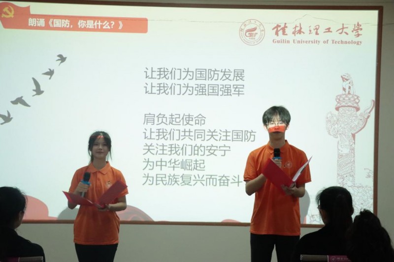学院高度重视并积极联合学校团委以及保卫处共同深入开展“国家安全 青春挺膺”示范性主题团日活动。桂林市公安局雁山分局驻校警务联络官曾学师以《国家安全:我们都是守护人》为主题进行微团课授课,他声情并茂地将国家安全的定义、重要性以及每个人应有的国家责任讲给现场师生,并积极解答了同学们提出的疑惑,加深了他们对国家安全知识的理解和认识。此外,现场团员青年代表还朗诵了《国防,你是什么?》,唱响了《少年中国说》,并紧扣国家安全主题展开热烈的知识竞答。他们用真挚的声音与实际行动,深刻诠释了对国家安全的理解和敬畏之情,彰显了当代青年的爱国情怀和坚定信念。