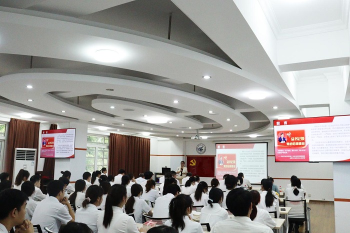 宣誓仪式上,商学院党委委员、副院长卢智增为新发展党员佩戴了党员徽章,商学院党委副书记、院长李雷赠送了学习书籍。商学院党委书记白凌婷讲授了专题党课,并勉励在座的新党员:要在学党纪中明方向,筑牢信仰基石,常学常新,做政治清醒的“明白人”;在知党纪中守规矩,铭记行为红线,常思常省,做廉洁自律的“规矩人”;在明党纪中强意识,保持作风正派,常修常炼,做担当实干的“带头人”;在守党纪中担作为,坚守清正廉洁,常悟常进,做情系师生的“贴心人”。