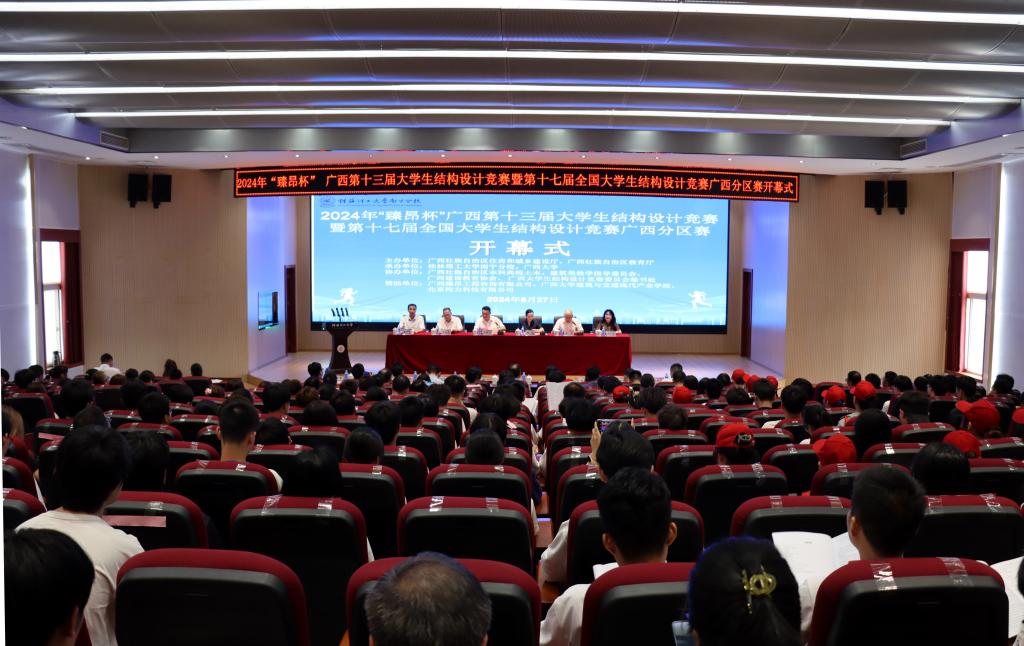 大学生结构设计竞赛开幕式现场。beat365官方网站南宁分校供图