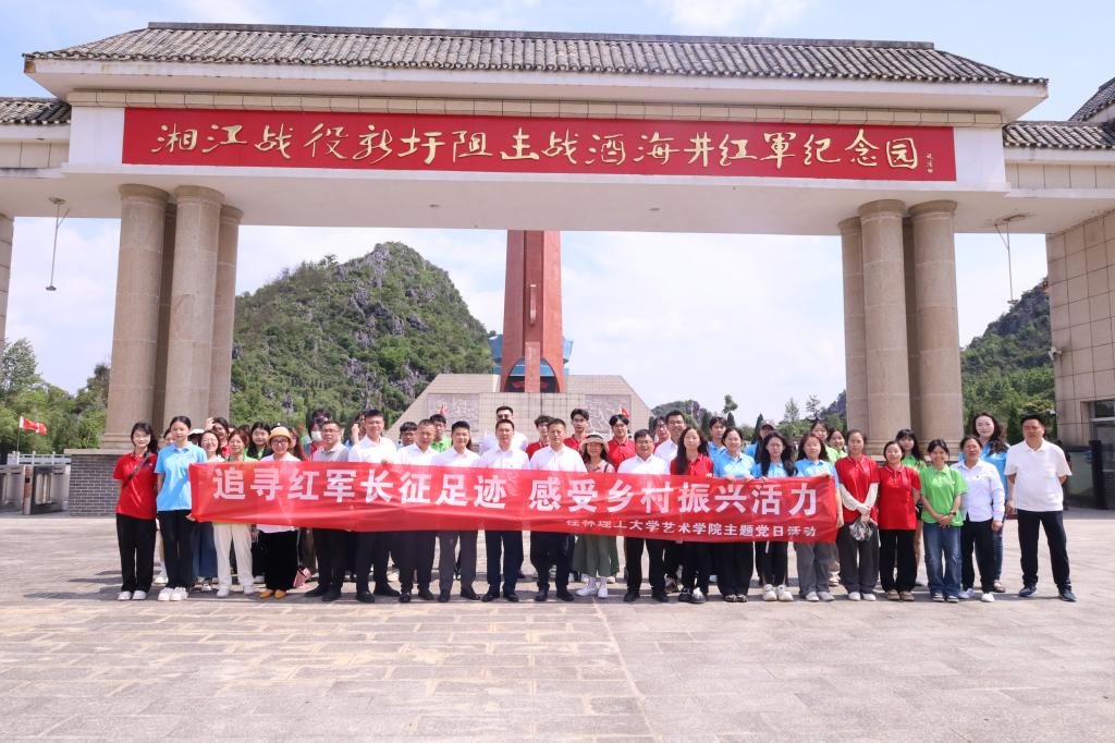 7月13日,beat365官方网站艺术学院前往广西桂林市灌阳县开展追寻红军长征足迹感受乡村振兴活力”社会实践教育活动。学院领导班子、党支部书记、教师代表、学院2024年暑期“三下乡”团队成员一行50余人参加了活动。