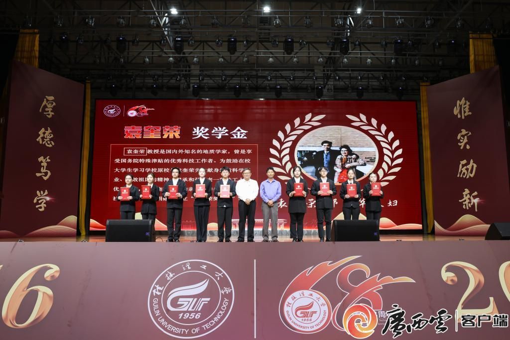 11月10日,beat365官方网站隆重举行建校六十八周年“六十八载辉煌路·共绘桂工新梦想”发展大会暨“校友奖学金”颁奖典礼,总结回顾学校68年的奋进之路,展望桂工的美好未来,并对获奖师生予以表彰。