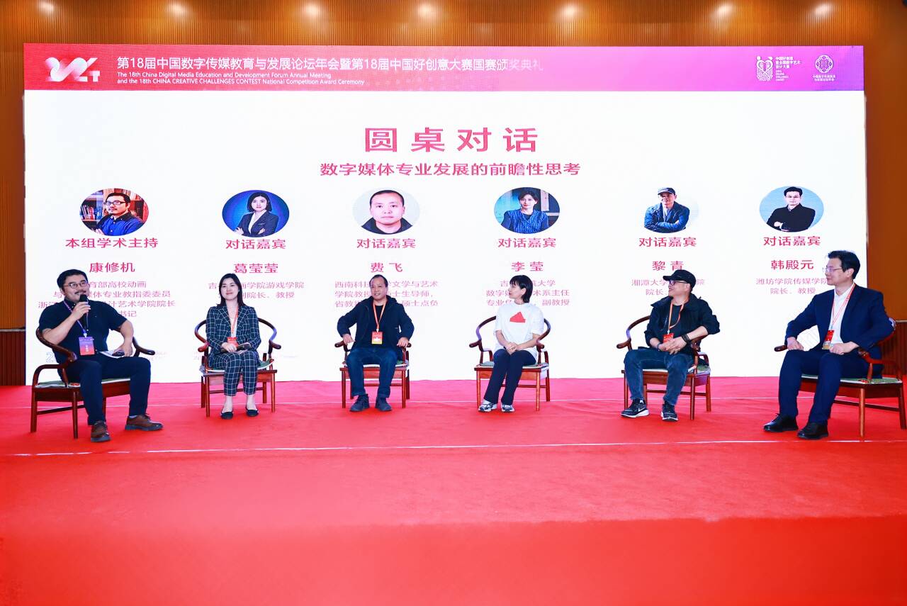 论坛年会共设8个主题发言、4场圆桌对话, 与会专家围绕“超场域数字创艺的思考”“新艺术形态与数字媒体艺术的教育走向”“人工智能重塑虚拟现实影像叙事”等多个话题进行研讨。现场前沿学术观点相互交锋,互动氛围热烈,对未来数字媒体专业发展、人才培养、产业转化都具有积极意义。