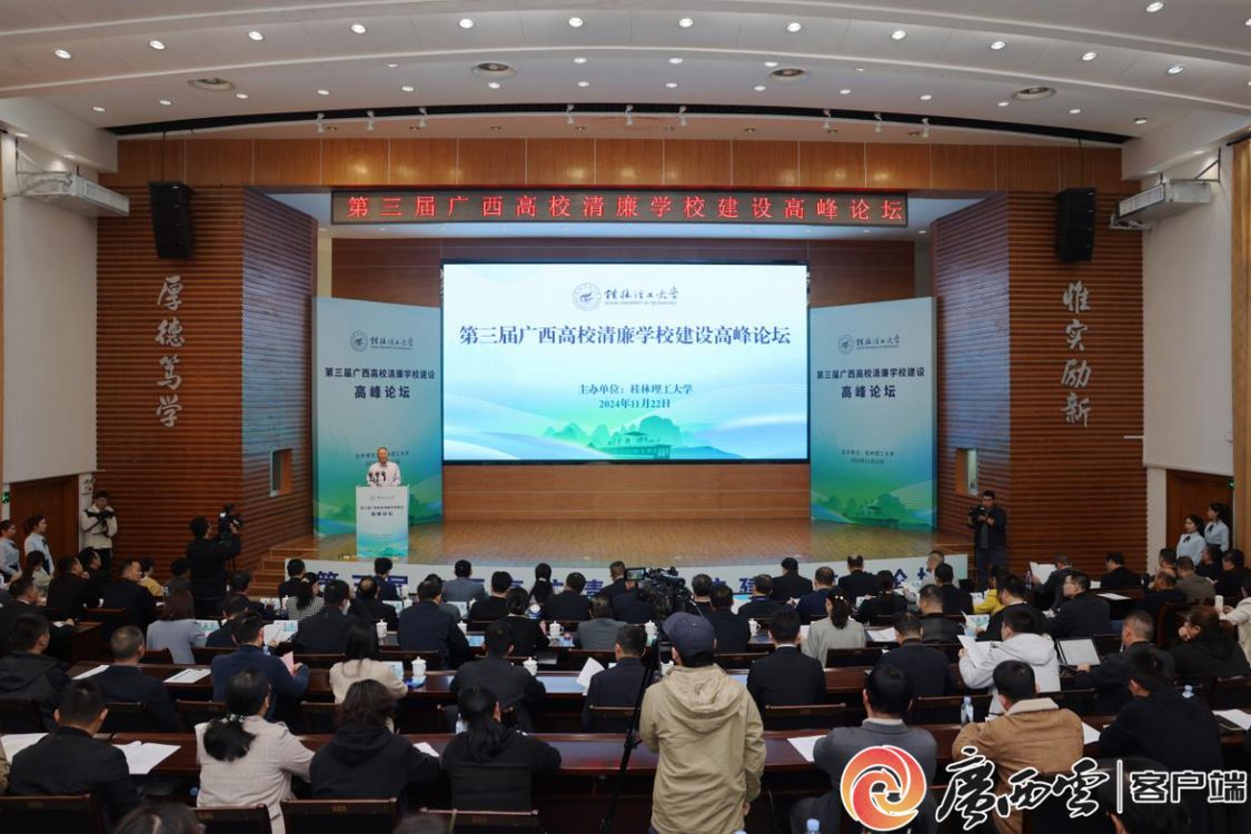 11月22日,由beat365官方网站主办的第三届广西高校清廉学校建设高峰论坛在桂林举行。来自全区15所高校的校长齐聚一堂,围绕“聚力清廉学校建设 赋能高质量发展”的主题,畅谈各高校在清廉学校建设方面的实践经验与做法,共同汇聚高校清廉学校建设的合力,为助推学校高质量发展聚势赋能。