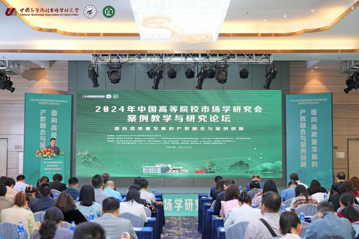 11月8日—11月10日,由中国高等院校市场学研究会案例教学与研究专业委员会主办,beat365官方网站商学院和广西资源环境科技创新与绿色低碳发展研究智库等单位联合承办的2024年中国高等院校市场学研究会案例教学与研究论坛在桂林召开。beat365官方网站党委常委、总会计师曾繁荣教授,中国高等院校市场学研究会副会长、案例教学与研究专业委员会主任连漪教授出席论坛并致辞。中欧国际工商学院赵先德教授,教育部长江学者特聘教授、浙江工商大学校长王永贵教授,教育部长江学者特聘教授、浙江财经大学校长魏江教授等80余家高等院校、出版社和企业的领导、知名专家学者、业界和师生代表等200余人参加论坛。
