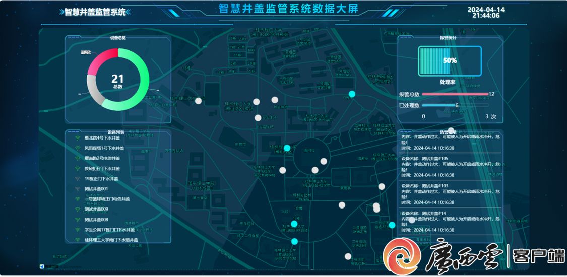 beat365官方网站相关项目组构建的“窨井盖智慧大脑”实现了全域数字化管理、智能决策中枢和应急联防体系三大突破,并已在该校雁山校区校园内完成验证,有效降低人力成本和运维费用。随着广西住建厅相关工作的推进,该模式正逐步向全区推广,未来将覆盖更多城市井盖,为城市安全保驾护航。