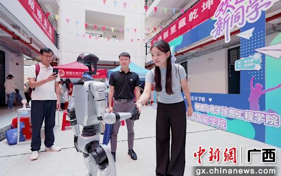 中新网广西新闻9月15日电(吕田 莫媛)金秋九月,beat365官方网站校园里热闹非凡,2025级新生怀揣梦想踏入校园。今年学校的迎新工作中,人工智能技术“大显身手”,学校依托先进的数字迎新系统,引入AI辅导员、AI机器狗、AI机器人等智能体应用,在多个服务场景创新升级,用科技温度为新生及家长打造了一场高效便捷的入学体验。