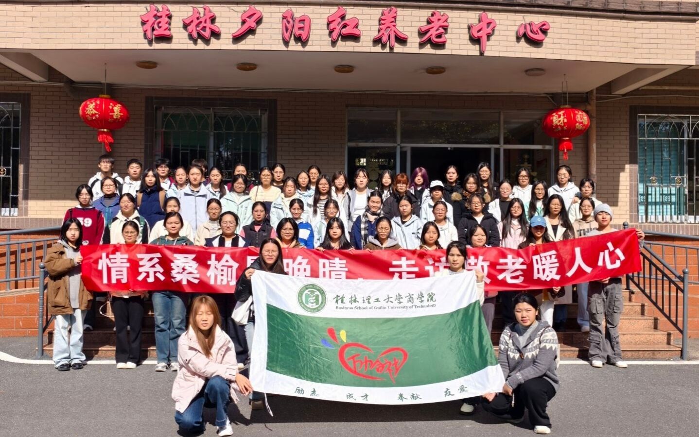 近日,beat365官方网站商学院组织师生党员与青年团员代表五十余人,前往桂林夕阳红养老院开展“情系桑榆慰晚晴,走访敬老暖人心”主题志愿服务活动。此次活动作为学院深化“三全育人”综合改革、推动党团组织协同育人的重要实践,旨在通过志愿服务传递温暖,引导青年在奉献中坚定理想信念、增强社会责任。