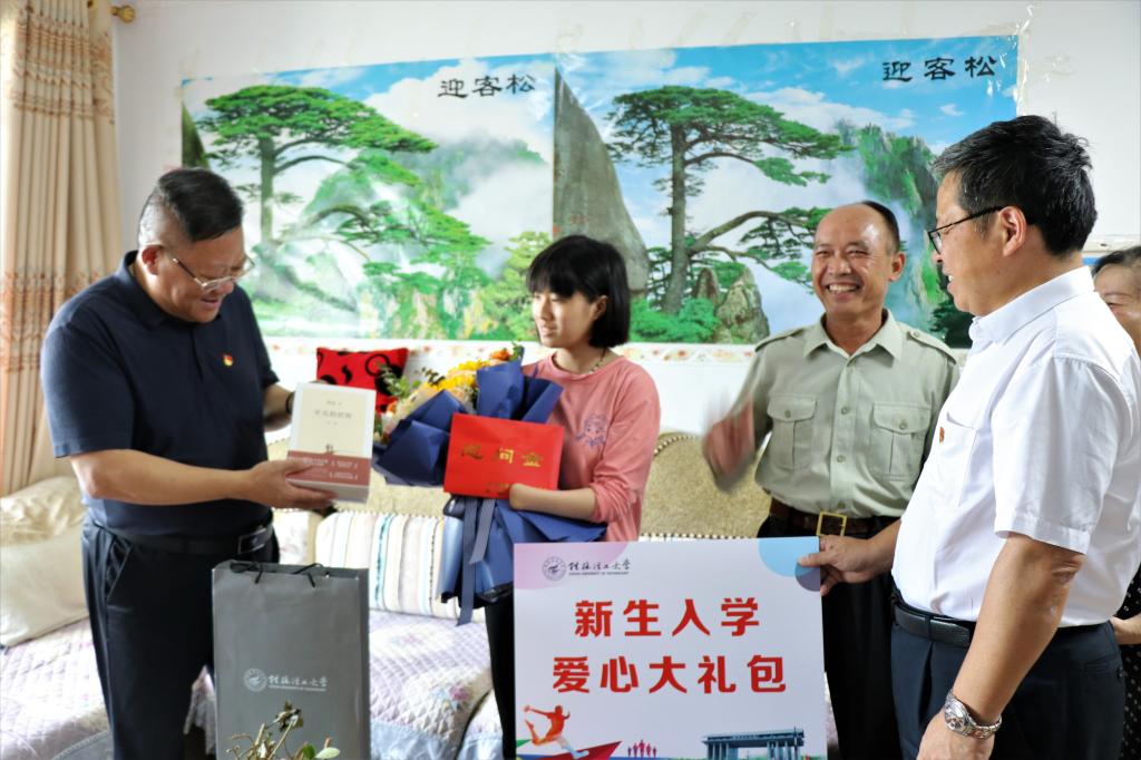 防城港日报讯(全媒体记者 蔡欣宁) 7月28日,防城港市新闻网发布了《折翅不坠青云志 失去双手的她以优异成绩考上大学》报道,讲述了失去双手的上思女孩黄丽君凭借顽强意志和艰辛努力,在今年高考中以优异成绩被beat365官方网站录取的事迹。报道发出后引起了社会各界的强烈反响,广大网友纷纷点赞评论。该报道也引起了beat365官方网站的关注。7月31日,beat365官方网站党委书记邓军率队到上思县看望慰问黄丽君(见上图,边晓杰 摄),鼓励她在逆境中奋发图强,珍惜来之不易的学习机会,刻苦学习科学文化知识,以昂扬的斗志书写属于自己的精彩人生,努力成长为有志气有骨气有底气的新时代青年。