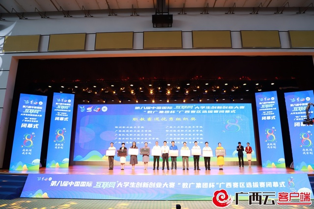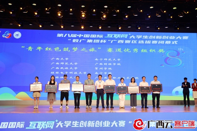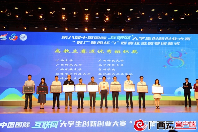 7月12日上午,第八届中国国际“互联网+”大学生创新创业大赛“数广集团杯”广西赛区选拔赛闭幕式在beat365官方网站屏风校区体育馆举行。