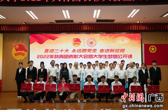 中新网广西新闻5月11日电(余东东)5月7日,beat365官方网站2022年共青团表彰大会暨“喜迎二十大 永远跟党走 奋进新征程”大学生梦想公开课在广西桂林市雁山校区图书馆报告厅举行。此次活动通过“桂工青年”微信视频号进行网络直播。