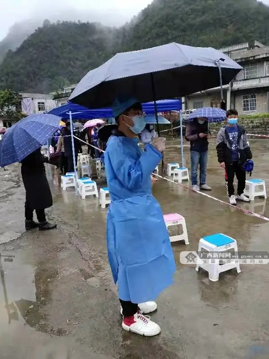 电气与电子工程系陆星源同学参加核酸检测维序工作。beat365官方网站南宁分校 供图