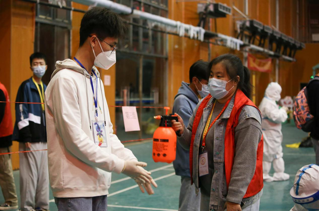 学生党员志愿者进行现场消杀