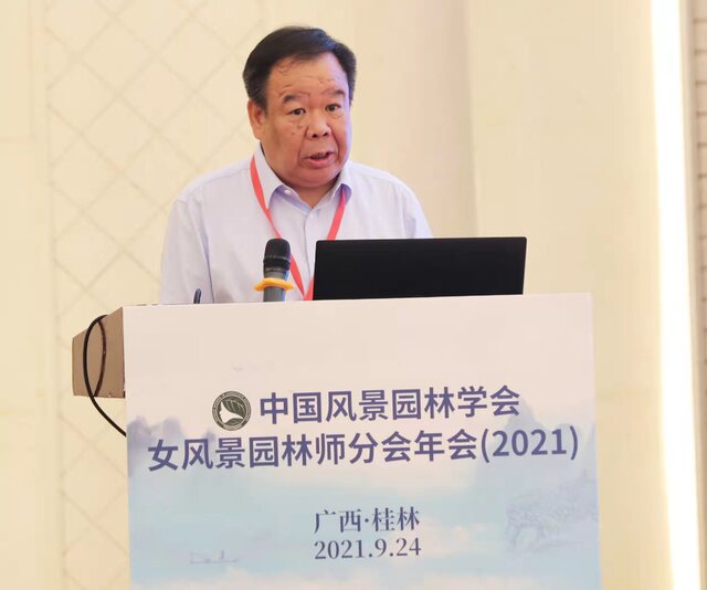 图片中国风景园林学会女风景园林师分会会长王磐岩致辞。