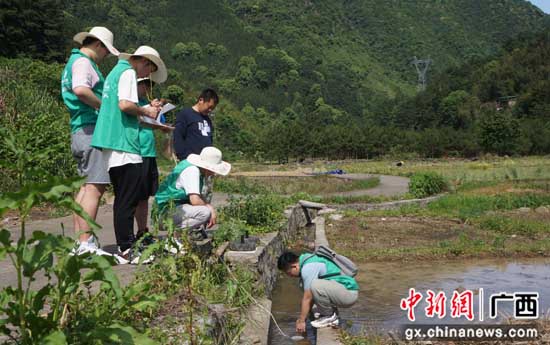 湿地突围第一、二、三代团队于桂林市全州县毛竹山村进行湿地健康情况调研。黄英才 摄