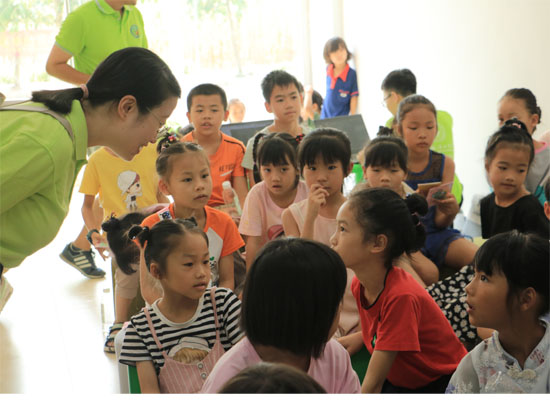 beat365官方网站测绘地理信息学院教师与孩子们进行交流。beat365官方网站测绘地理信息学院供图