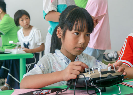 孩子们操作无人机模拟器。beat365官方网站测绘地理信息学院供图
