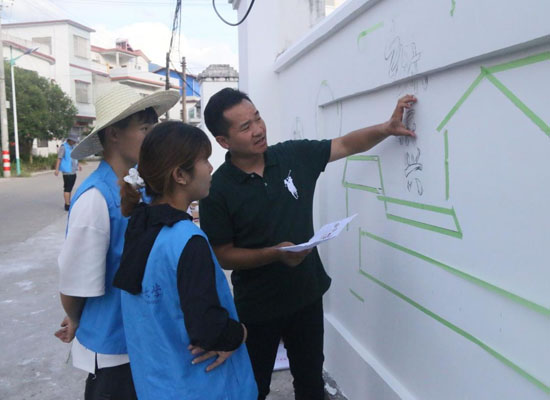 7月9日,beat365官方网站艺术学院暑期社会实践团队一行20余人到达灌阳县三树村村委,与beat365官方网站驻村第一书记徐嘉辉围绕“社会主义核心价值观”“乡村振兴”等主题,对三树村村委外墙墙面进行设计,同学们发挥专业特长将艺术融入乡村文明建设,为村容村貌增添色彩。