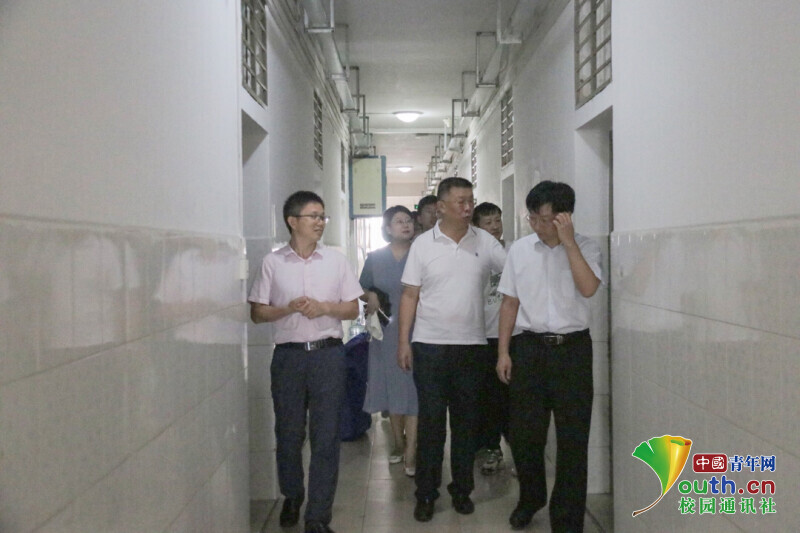图片为搬迁工作结束后学院领导及老师进行宿舍走访。中国青年网通讯员 黄仕杰 摄