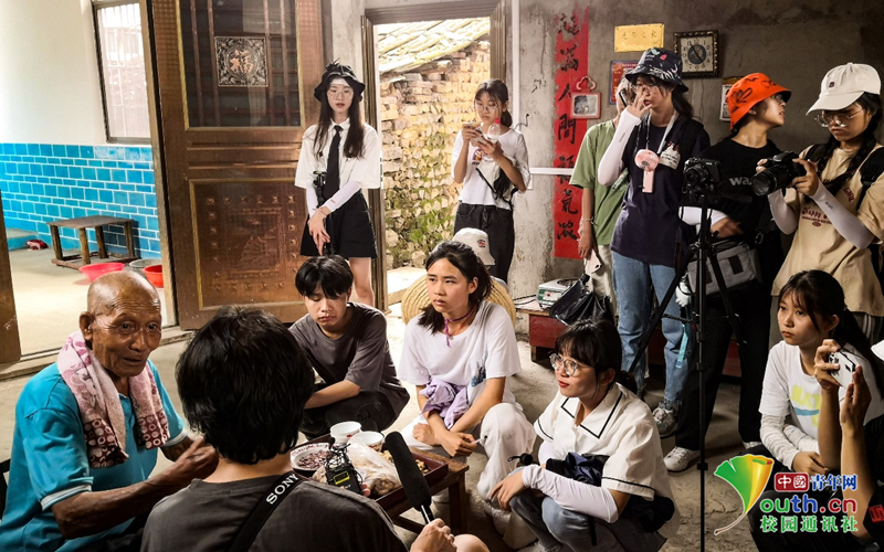 图为学子与革命老兵交谈。受访者供图