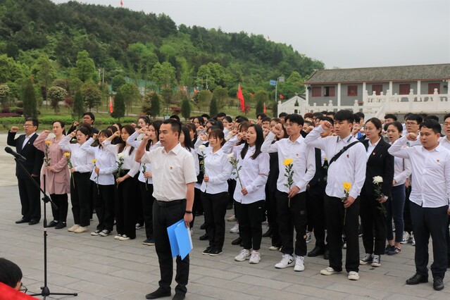 在灌阳县湘江战役新圩阻击战酒海井纪念园开展主题党日活动。(学工部(处)、团委党支部 摄)
