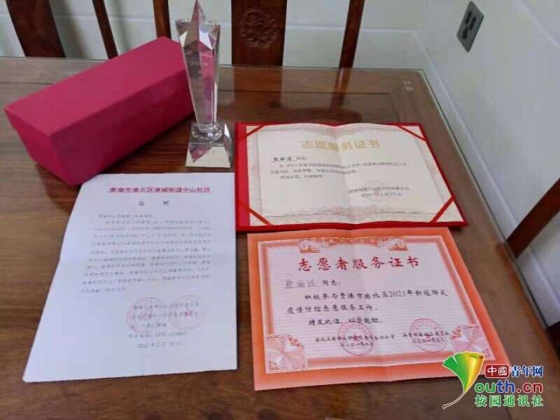 志愿工作结束后,港城街道中山社区居民委员会为她颁发了刻有自己名字的奖杯。对于这份“惊喜”,她向记者表示:“一开始收到奖杯的时候,我挺意外的。通过这几天的工作,我明白了,社区工作人员不仅平时要完成本社区的工作,还要面对疫情防控各种繁杂的情况。他们每天坚守在防疫一线,很辛苦但这是值得。作为当代青年人,我更应该也贡献一份自己的力量。”