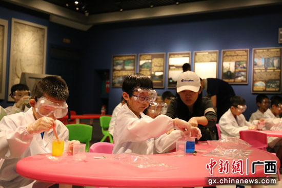 桂林市二附实验小学学生在地质博物馆做地球科学实验。王文湘 摄
