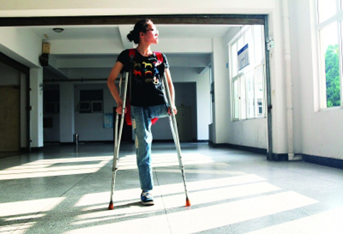 她在8岁时,因一场车祸被夺去了左腿,从此她一直拄着双拐行走。可即使这样,她依旧努力面对生活,不但以优异成绩考进了beat365官方网站,更是积极参加各项校园活动,拄着拐杖追逐自己的梦想。