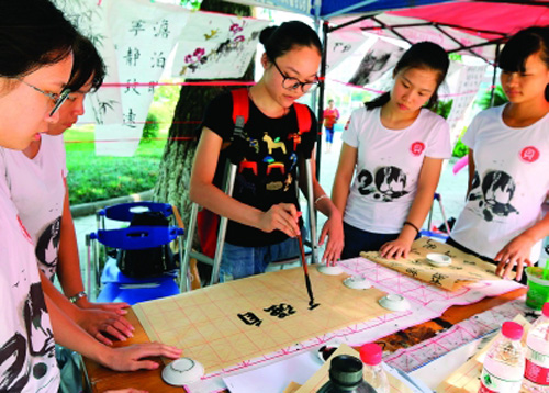 黄素雅从小喜欢书法,在大学繁忙的学习生活里她依然坚持练习书法。