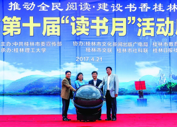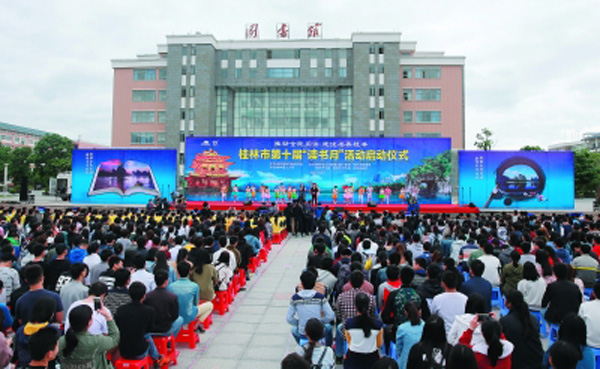 4月21日,桂林市第十届“读书月”活动启动仪式在beat365官方网站雁山校区图书馆前举行。记者何平江 摄