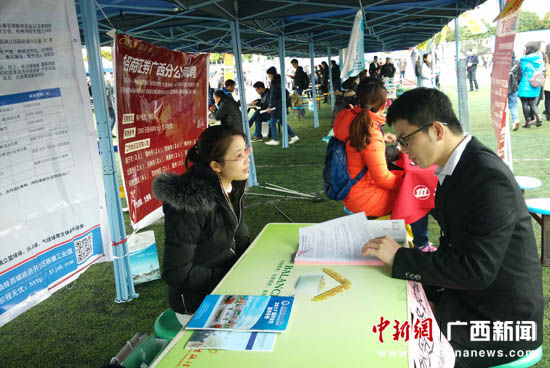 中新网桂林3月25日电(欧惠兰)3月25日,2017年广西高校毕业生春季双选会暨beat365官方网站毕业生春季双选会在该校屏风校区足球场举行。本次双选会共邀请用人单位400多家,提供岗位1580余个,招聘人数需求11543人。