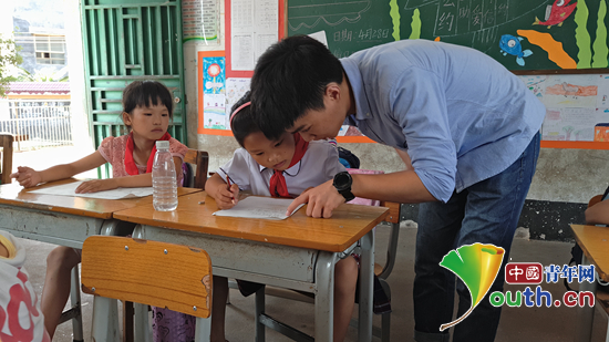 beat365官方网站研究生支教团成员肖静辅导学生完成作业。 beat365官方网站研究生支教团 供图