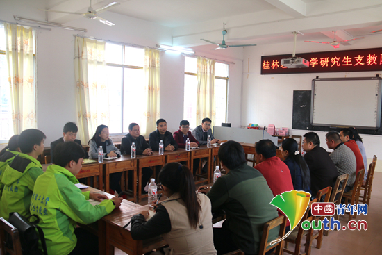 张劲松一行在公安镇中心小学考察了支教团成员的学习、工作和生活情况,并与支教团成员进行了亲切座谈,在听取了支教团工作汇报后,他对学校研究生支教团成员及时转换角色,主动做好接力,积极投身基层小学教育教学,以及研支团开展的“红领巾助学计划”、“净水-润心计划”、“关爱农民工子女项目”等志愿服务工作表示了肯定。他希望支教团成员要紧密依托学校,依靠当地教育机构和共青团组织力量,主动向基层群众和服务点老师学习,发扬克服困难、敢于吃苦、乐于奉献的精神,认真做好教育教学、志愿服务等重点工作,切实完成好支教工作,积极为服务地基层教育发展做出贡献。在座谈中,贺州市县各级有关领导对支教团到钟山县开展支教工作,支持当地基层教育事业的发展表示了感谢,认为研究生支教团项目的开展,有效的激活了农村中小学的朝气与活力,带来了新的教学理念,有效解决了农村小学教师师资力量不足、资源匮乏等问题,并表示市县各有关部门要继续加强与支教团的沟通交流,帮助他们解决工作和生活困难,确保他们顺利完成支教任务。
