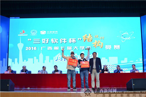自治区住房和城乡建设厅人事教育处处长甘梅华、自治区住房城乡建设厅勘察设计管理处副处长梁浩文等出席竞赛闭幕式的领导嘉宾分别为获奖代表队颁发了奖杯和证书。