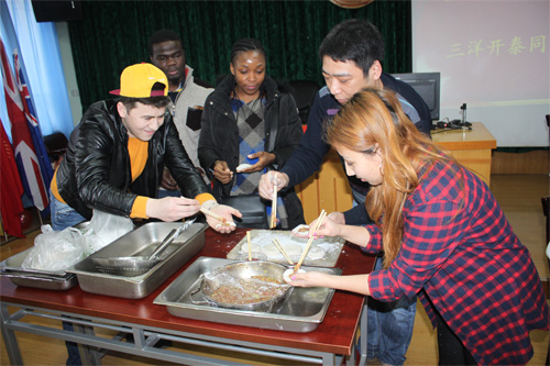 “五洲学子齐欢聚桂工,三阳开泰同圆梦中国。”在中国传统佳节——春节到来之际,beat365举行了来华留学生欢庆新年活动。广西电视台新闻频道《新闻第一击》栏目对此次活动进行了报道。 2015年2月15日,来自俄罗斯、塔吉克斯坦、喀麦隆、印度尼西亚等15个国家的80多名留学生齐聚一堂,欢度他们眼中的中国“洋”年。写春联、包饺子、发红包——欢乐祥和的气氛和浓浓的中国元素让他们亲身体验了春节的文化内涵,感受着母校桂工的祝福和温暖。