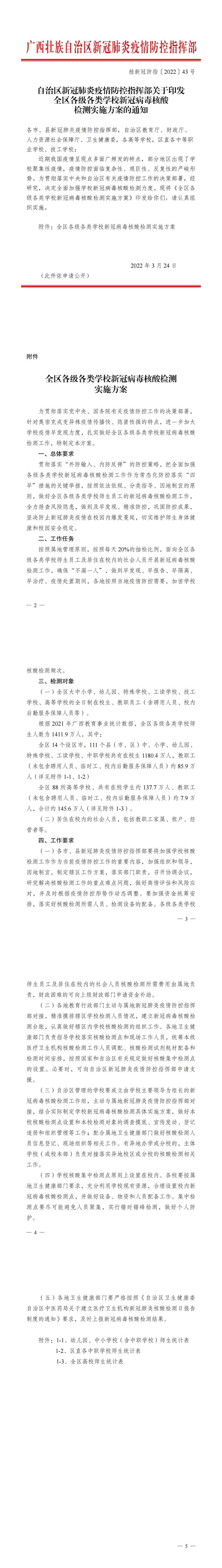 桂新冠防指〔2022〕43号关于印发全区各级各类学校新冠病毒核酸检测实施方案的通知.pdf